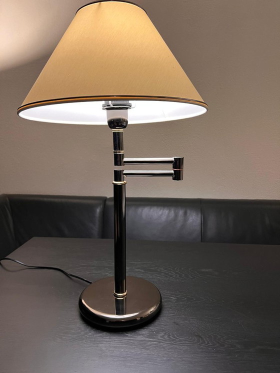 Elegante lampada da tavolo AF Cinquanta, prodotta in Italia, con braccio girevole regolabile, un bellissimo esempio di autentico design italiano degli anni '70/'80. Questa lampada vintage è in ottime condizioni, perfettamente funzionante e presenta minimi segni di usura. Grazie al braccio girevole, offre un'illuminazione pratica e versatile, mentre il suo design elegante e le finiture di alta qualità la rendono un vero e proprio elemento di spicco per la vostra scrivania o i vostri interni.