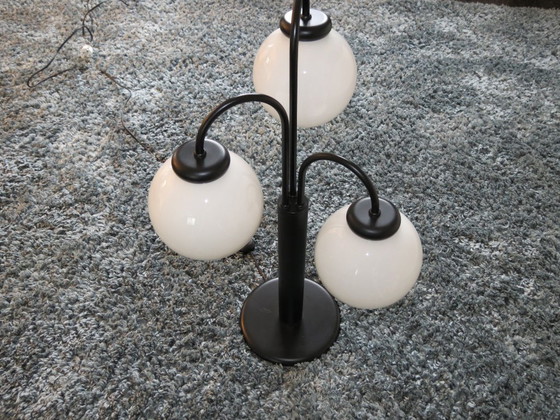 lampada da tavolo retrò bianca e nera con 3 sfere di vetro