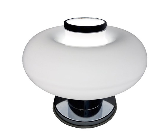 Lampada da tavolo vintage • Acciaio e vetro • Murano • Era spaziale • 1970