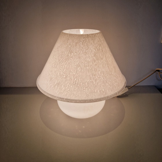 Lampada da tavolo vintage bianca di Glashutte Limburg, lampada a fungo