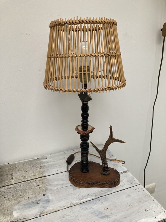 Lampada da tavolo vintage in legno con cappello rotante/bambù