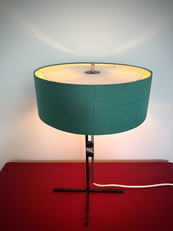 Rara lampada da tavolo vintage Kaiser Leuchten - Mid Century Modern - anni '60 Specifiche: Altezza lampada: da 50 a max 63 cm Diametro: lampada ø35 cm Base: 26 x 26 cm Attacco: 2xE27 (adatto anche per lampada a LED - non inclusa) Biografia: Gebr. Kaiser & Co. Leuchten KG è stata fondata alla fine del XIX secolo dai fratelli Hermann Kaiser e suo fratello. Nei primi anni, producevano principalmente componenti per altre aziende di illuminazione. Grazie all'innovazione della lampada a cherosene, divennero grandi. Dopo la guerra arrivò l'innovazione dell'illuminazione elettrica. Principalmente grazie al designer Bauhaus Christian Dell, divennero una delle aziende di illuminazione più grandi e popolari con un massimo di 1000 dipendenti. Negli anni '70, l'azienda fu acquistata dal Thorn Lighting Group. Ancora oggi, le lampade vintage Kaiser Leuchten sono molto ricercate dai collezionisti e dagli appassionati del design Bauhaus / Mid-Century Modern per la loro fattura e il loro aspetto senza tempo. In condizioni generalmente molto buone. Paralume in tessuto originale di un bellissimo verde. Un piccolo difetto (vedi ultima foto). Un foglio di carta/pergamena che ricopre la parte superiore crea una piacevole luce diffusa. Accuratamente imballato e spedito con tracciabilità, assicurazione inclusa. Contattatemi prima di ordinare per confermare la disponibilità. Testo e foto copyright LAMPALICIOUS - Vintage Designer Lamps