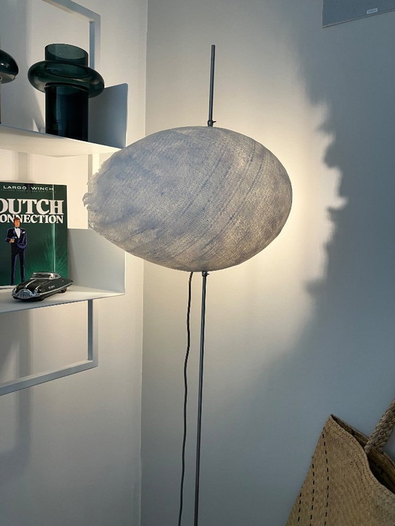 Lampada da terra Catellani &Smith postkrisi , paralume curvo in fibra di vetro che conferisce alla lampada una luce molto piacevole , trasmissione della luce indiretta e diretta , altezza 2m regolabile