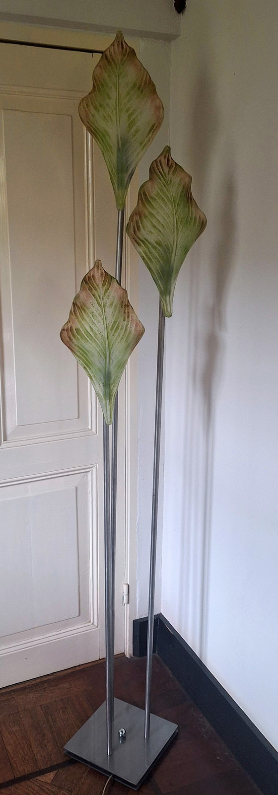 Lampada da terra con paralumi in vetro di Murano a forma di foglia, anni '90
