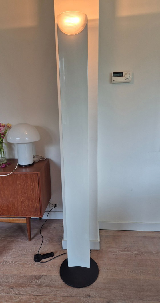 La lampada da terra Luci Italis Adonis è stata disegnata da Gianfranco Frattini negli anni '80.
