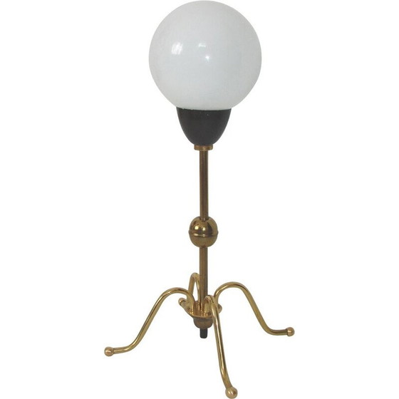 Lampada da terra Mid-Century, anni '60, realizzata in ottone e vetro. La lampada è in ottime condizioni e richiede una lampadina E14. Dimensioni: altezza 50 cm, larghezza 22 cm, profondità 22 cm.