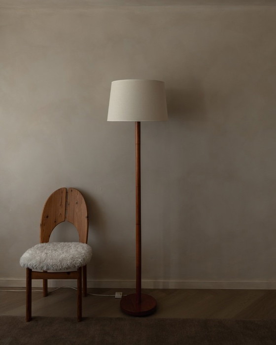 Lampada da terra vintage in teak con paralume in tessuto | Lampada da terra in stile scandinavo moderno | Anni '60-'70