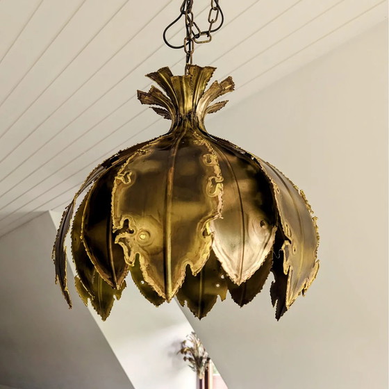 Lampada di design danese modello "6395" di Svend Aage Holm Sørensen per Sørensen. Splendida grande lampada a sospensione brutalista in rame del designer danese Svend Aage Holm Sørensen. Dimensioni: diametro 40 cm / altezza 45 cm, lunghezza della catena regolabile fino a 75 cm. Questa lampada proviene direttamente dalla Danimarca ed è ancora in buone condizioni! La lampada è dotata di catena e paralume originali, che recano ancora il marchio di fabbrica originale e il numero di prodotto 6395.