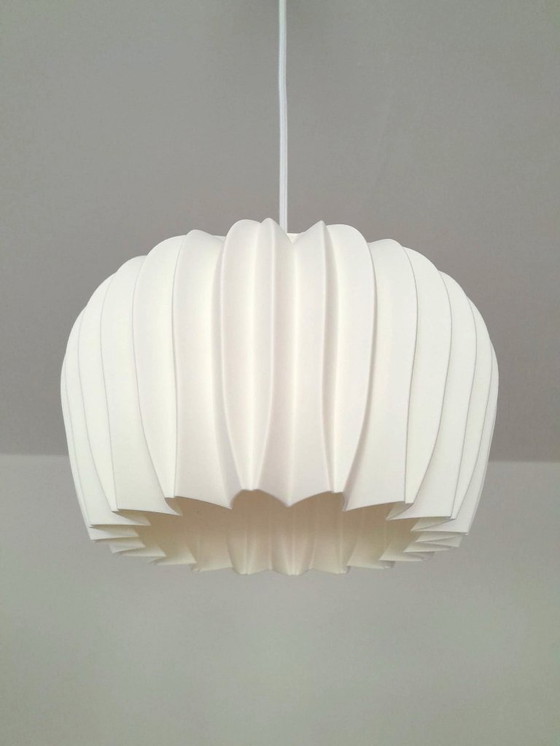 La lampada a sospensione è realizzata in un biopolimero sostenibile, bianco opaco, a base di amido di mais ed è biodegradabile/ecologico secondo la norma DIN EN ISO 14588. Il materiale è resistente, impermeabile e facile da pulire.