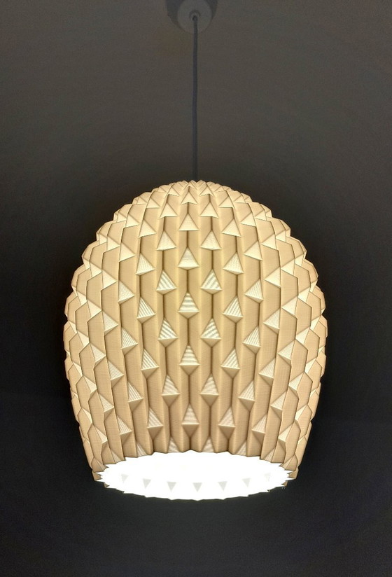 Questo esclusivo oggetto luminoso, "Trian", è stato progettato in uno studio di design berlinese e stampato in 3D utilizzando un sofisticato processo di calcolo.