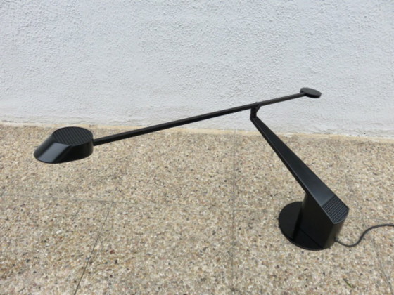 Lampada dell'architetto I Guzzini, designer Rodolfo Bonetto, Italia, 1983. Dimensioni sulla foto n°5: altezza 50 cm - lunghezza 95 cm - larghezza 16 cm. Peso 3,4 kg. La lampada è in ottime condizioni e perfettamente funzionante. Da segnalare alcune mancanze di vernice sulla base. Presente il marchio dell'editore (foto n°7).