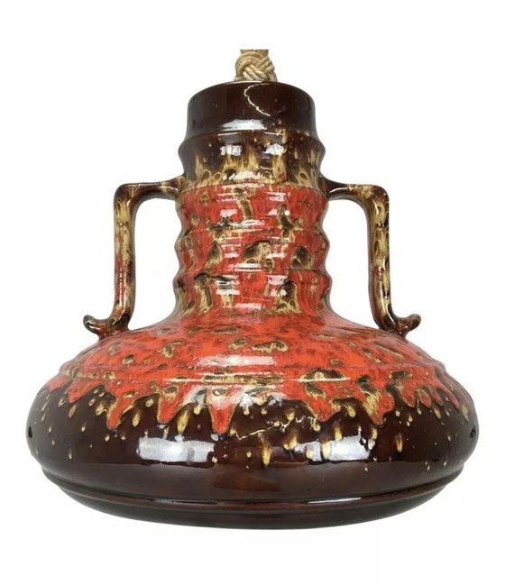 Lampada in ceramica anni '60 e '70, lampada a sospensione, design dell'era spaziale