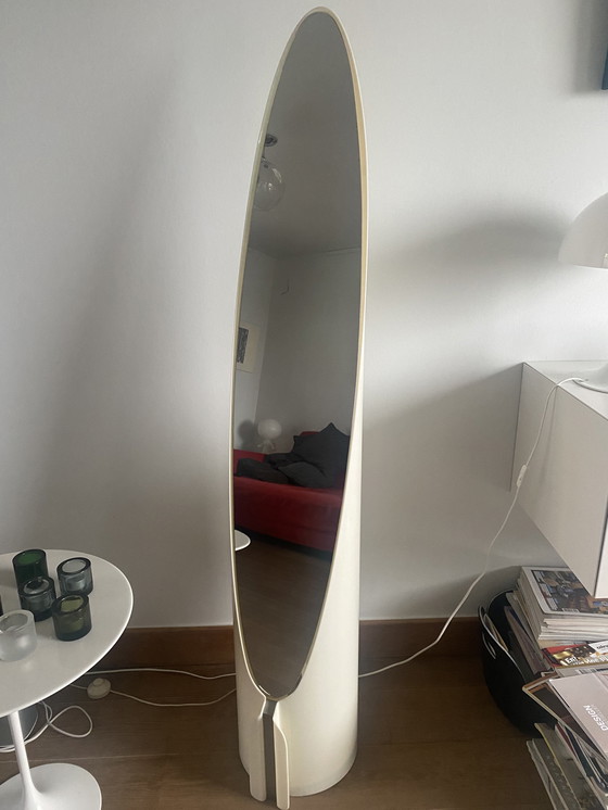 Trovare un autentico specchio Unghia vintage è una vera sfida al giorno d'oggi, trovare uno specchio vintage con lampada è estremamente raro. Illumina il tuo spazio con la lampada-specchio Lipstick di Rodolfo Bonetto, un pezzo iconico che incarna l'eleganza moderna e il design innovativo. Questa lampada, nota come "Unghia", è una testimonianza dell'approccio visionario di Bonetto, che fonde perfettamente forma e funzione.