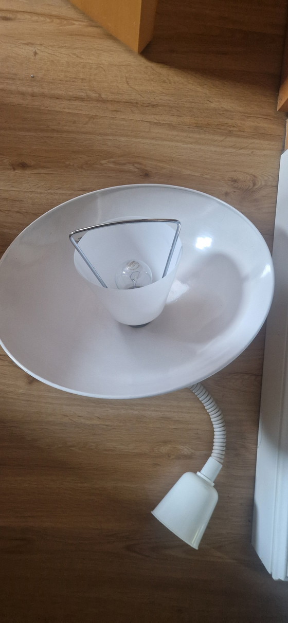 Portate un tocco di futurismo retrò nella vostra casa con questa lampada a tirante vintage in stile Space Age. La lampada è realizzata in metallo bianco e plastica, per un look elegante e moderno. Il braccio regolabile permette di dirigere la luce esattamente dove serve, rendendola un'aggiunta funzionale ed elegante a qualsiasi stanza. Perfetta per gli amanti del design retrò con un tocco moderno.