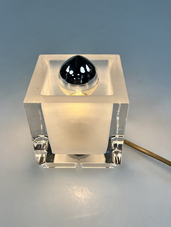 Una deliziosa lampada a cubo vintage – modello 50 234 16 – realizzata dal marchio tedesco Nachtmann Leuchten Design negli anni '70. Siete amanti del design vintage in vetro e del lusso discreto? Allora questa lampada fa sicuramente al caso vostro. Questo pezzo di design compatto combina forme pulite con splendidi riflessi di luce ed è un pezzo forte su qualsiasi comodino, comò o scrivania. È in perfette condizioni, marchiata sulla lampada e sul cavo dorato, ed è dotata di un portalampada in ottone dorato. Il cavo può essere ripiegato lungo tutti i lati e gli angoli tramite un incavo. Dimensioni: Altezza: 12 cm, Larghezza: 10 cm, Profondità: 10 cm