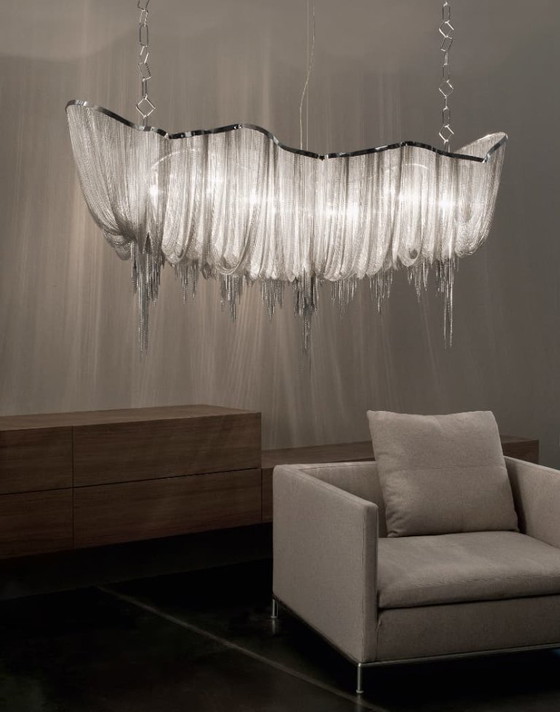 Apparentemente viva, la luce scintillante di Atlantis crea una vibrante fonte di energia. Il suo effetto ipnotico e organico è creato da centinaia di catene illuminate. Come l'acqua dell'oceano, le catene di Atlantis
