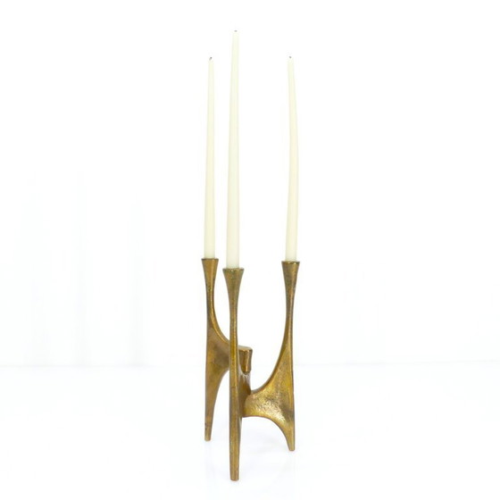 Lampadario brutalista a treppiede in bronzo, Michael Harjes, Germania, circa 1960