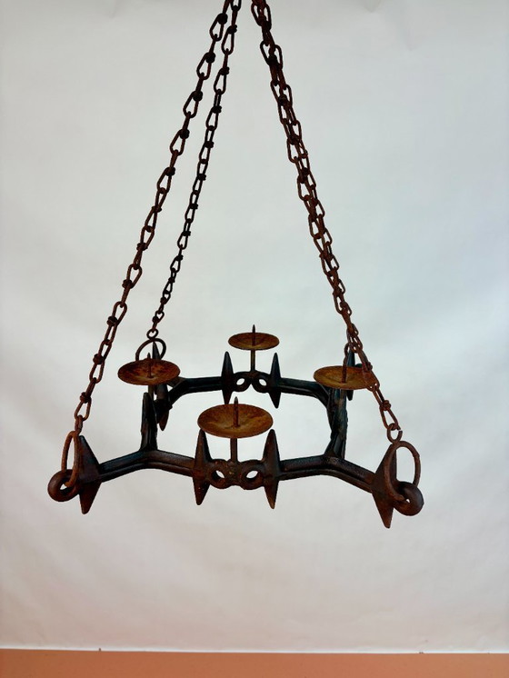 Splendido lampadario in ghisa con quattro portacandele.