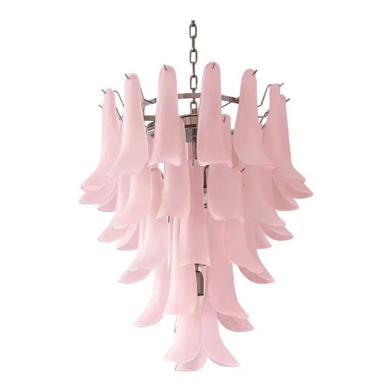 Lampadario contemporaneo in vetro di Murano "Selle" satinato rosa in stile Mazzega