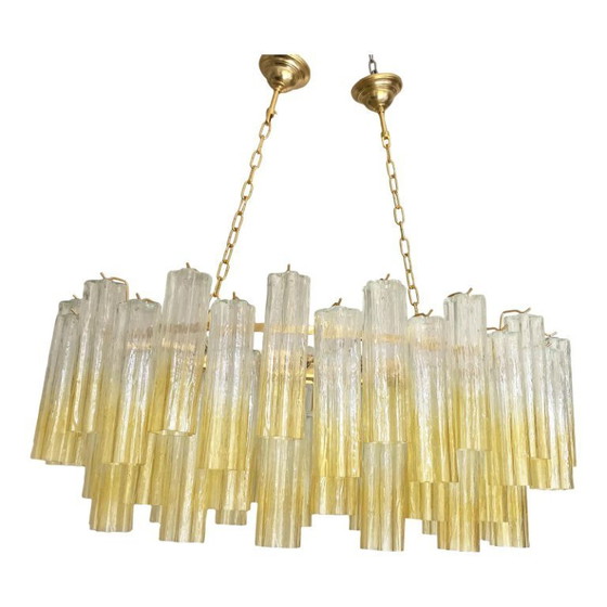 Lampadario contemporaneo ovale in vetro di Murano "Tronchi" color ambra trasparente sfumato in stile Venini
