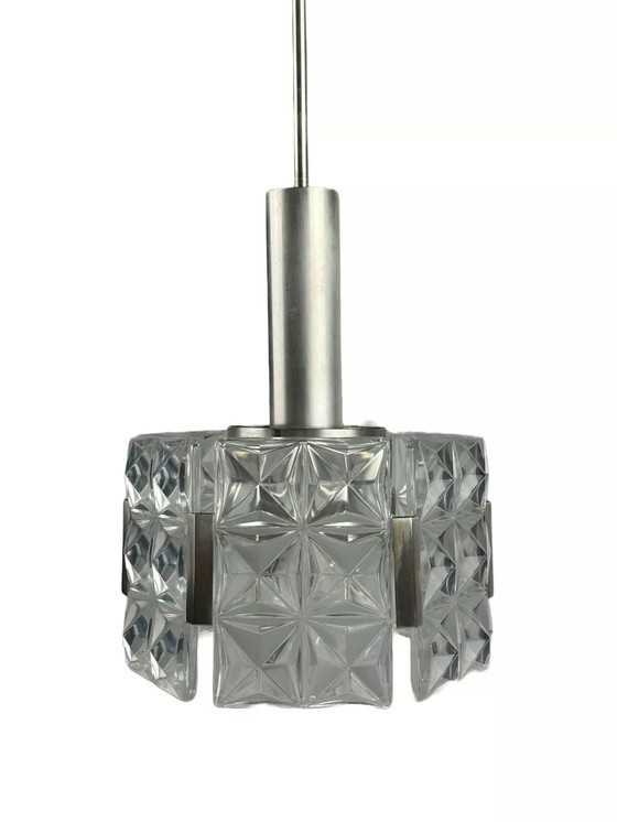 Lampadario da soffitto anni '60 anni '70 Hillebrand Leuchten Germany vetro metallo