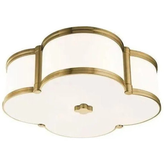 Magnifica plafoniera a forma di quadrifoglio, con quattro lobi arrotondati, come un quadrifoglio, prodotta da Hudson Valley Lighting, marchio americano di illuminazione di alta gamma.