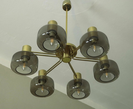 Lampadario grande in ottone e vetro di Hans-Agne Jakobsson, Svezia, anni '60