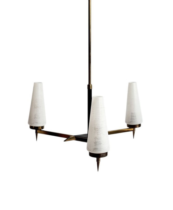 Magnifico lampadario a sospensione o a bracci prodotto negli anni '60 in stile Arlus.