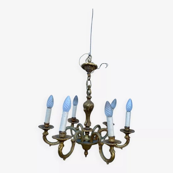 Evoca un'eleganza senza tempo con questo lampadario in ottone a cinque luci, ispirato allo stile Luigi XV. Questo sontuoso lampadario, con le sue curve aggraziate e la sua presenza maestosa, donerà un tocco di raffinatezza a qualsiasi interno.