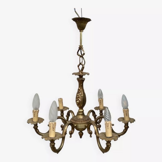 Evoca l'eleganza senza tempo dello stile Luigi XV con questo lampadario in ottone a 6 bracci. Questo sontuoso lampadario, con le sue curve aggraziate e i dettagli finemente lavorati, porterà un tocco di raffinatezza ai tuoi interni.