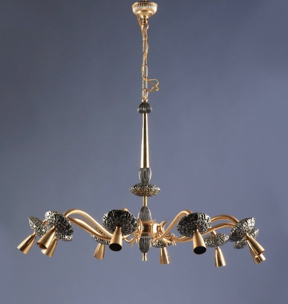 Questo squisito lampadario vintage italiano degli anni '80 è un pezzo straordinario che incarna eleganza e maestria. Caratterizzato da una splendida combinazione di toni oro e argento, è realizzato in metallo di alta qualità. Il design intricato e il fascino vintage del lampadario lo rendono un'aggiunta perfetta a qualsiasi interno sofisticato. Il suo fascino senza tempo e il suo stile unico sono in grado di esaltare l'atmosfera di qualsiasi ambiente.