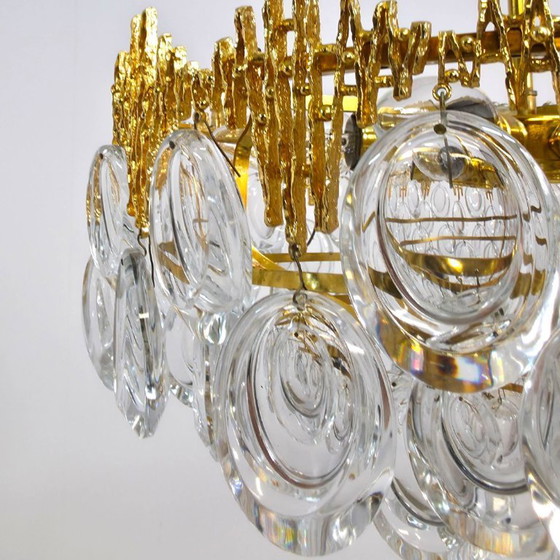 Lampadario Palwa in stile brutalista anni '60 dal tocco caldo. Ottone con vetro di cristallo.