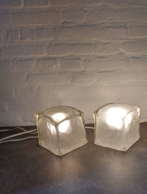 Set di due lampade vintage Ikea, modello Iviken (cubetto di ghiaccio) B0012, a forma di grandi cubetti di ghiaccio. Queste lampade sono state prodotte dal 1998 al 2003. Progettate da Henrik Leander.