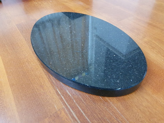 Valorizza i tuoi interni con questa splendida lastra ovale in granito, un perfetto connubio tra eleganza e funzionalità. L'elegante finitura nera e la superficie liscia la rendono un punto focale ideale o un elemento decorativo per la tua casa.