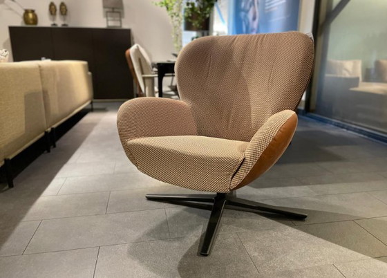 La poltrona girevole Legendary di Bree's New World colpisce immediatamente per il suo design organico e la sua imbottitura generosa e accogliente. Soprattutto se rivestita con una combinazione di tessuto e pelle a contrasto, è una poltrona che cattura l'attenzione. Tuttavia, a nostro avviso, l'aspetto della Legendary non è il suo principale punto di forza. È il suo comfort di seduta davvero eccezionale a farla davvero distinguere. Bree's New World non ama certo vantarsi, ma per la Legendary sono felici di fare un'eccezione. Dopo aver regolato ripetutamente il telaio, trovato l'angolazione ottimale della seduta rispetto alla base girevole e modificato lo spessore della schiuma, hanno raggiunto un livello di comfort che tutto lo staff elogia. La parte bassa e alta della schiena sono sostenute in modo sublime senza eccessiva pressione e le braccia poggiano comodamente sui braccioli bassi. L'angolazione della seduta bilancia tra passiva e attiva, rendendo questa poltrona multifunzionale per qualsiasi attività tu scelga di svolgere. Quindi, che ti piaccia leggere, giocare, guardare Netflix, filosofare, lavorare a maglia o bere vino, la Legendary ti terrà occupato per ore! Il nome di questa poltrona girevole non vuole essere arrogante, ma un omaggio al padre del regista Leen van Bree, Arij van Bree (da cui Legend-Ary), scomparso nel 2019 e che era ancora attivo per Bree's New World fino alla sua morte all'età di 91 anni. Poltrona Legendary Parte anteriore in Grape 20 Parte posteriore Rancho cognac 4 gambe epossidico nero