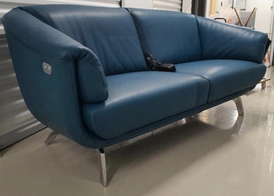 Leolux Ascana bank blauw leer, elektrisch verstelbaar