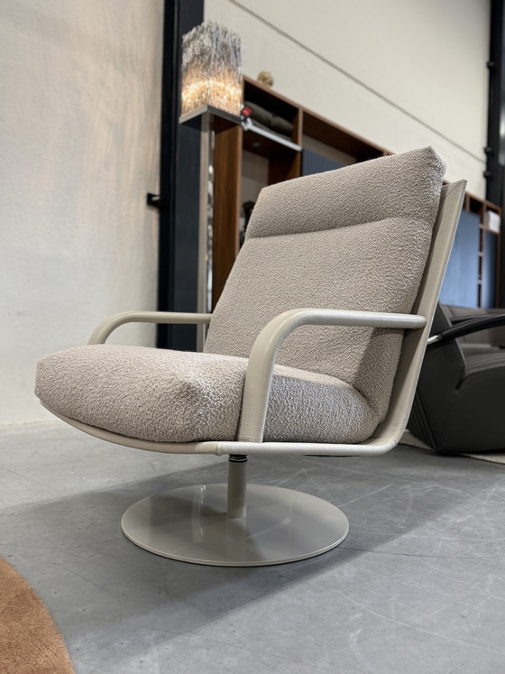 Nieuw leolux kudo two draai fauteuil uitgevoerd in ella bouclé stof in de kleur 0230. Senso pampas & Epoxy Space silk onderstel.
