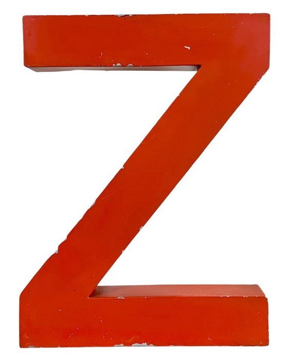 Questa lettera "Z" in stile industriale vintage è stata realizzata negli anni '70 in Italia e proviene da un vecchio striscione pubblicitario. Il peso della lettera è di 1 kg.