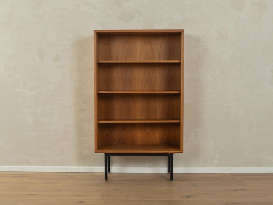 Libreria classica degli anni '50. Corpo di alta qualità in impiallacciatura di noce con tre ripiani e nuovi piedini quadrati in acciaio nero. Prodotto in Germania. Rif. 2502028