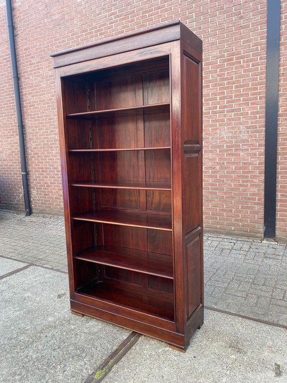 -Mogano massiccio -Ripiani regolabili 5 x -Dimensioni 220x110x42 -4 pezzi in magazzino -Possibile consegna con sovrapprezzo.