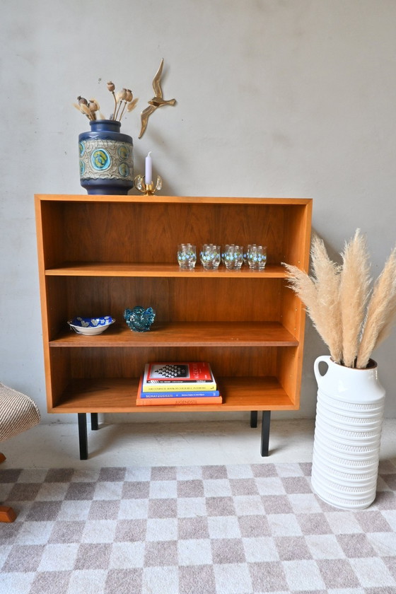 Elegante libreria vintage degli anni '60-'70, realizzata in caldo teak impiallacciato. Il design presenta linee pulite, gambe snelle e una disposizione aperta, perfetta per esporre libri, ceramiche o oggetti da collezione. Un mobile senza tempo, funzionale e decorativo. Specifiche: Materiale: Teak impiallacciato Periodo: anni '60-'70 Condizioni: Buone condizioni vintage con lievi segni di usura, commisurati all'età.