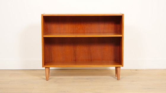 Questa affascinante libreria vintage in teak è compatta nelle dimensioni ma grandiosa nell'aspetto. Il legno caldo e le linee pulite conferiscono al mobile un aspetto senza tempo che si adatta perfettamente a un arredamento moderno o retrò. Con due ripiani aperti, offre spazio sufficiente per i vostri libri preferiti o per le vostre decorazioni. Ideale per il soggiorno, lo studio o accanto al letto. Un mobile elegante e pratico con carattere.