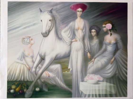 Litografia "Donne e cavallo bianco" di Philippe Augé