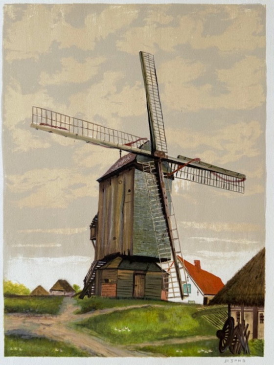 Litografia "Mulino a vento" di Pierre Spas.