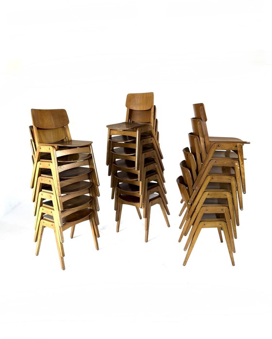 Lotto di 19 sedie vintage impilabili in compensato, di fabbricazione tedesca, anni '60.