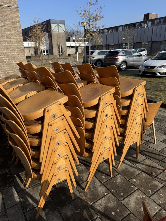 Lotto di 76 sedie impilabili in compensato vintage, Kaderer '60