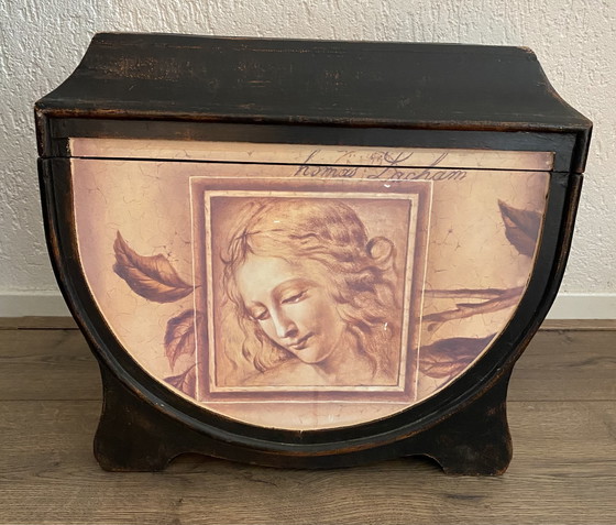 Lussuosa scatola decorativa in legno con ritratto rinascimentale