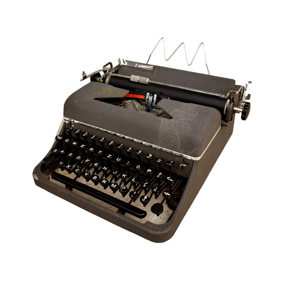 Macchina da scrivere portatile cecoslovacca 195X Zeta 1511, prodotta nei primi anni '50. L'articolo è stato prodotto da Zeta. L'articolo si riferisce allo stile Bauhaus. La macchina è funzionale, con una forma classica molto bella, una copia con una valigia. L'articolo, conservato in buone condizioni, è una vera chicca per un collezionista. La macchina può essere un elemento di design d'interni molto efficace. Colore: Nero, Argento Stile: Moderno di metà secolo, Modernismo, Art Déco, Bauhaus, Industriale Materiale: Acciaio, Cromo, Tessuto Dimensioni senza valigia: Altezza 13 cm | Larghezza 31 cm | Profondità 32 cm Scatola: Altezza 17 cm | Larghezza 35 cm | Profondità 37 cm
