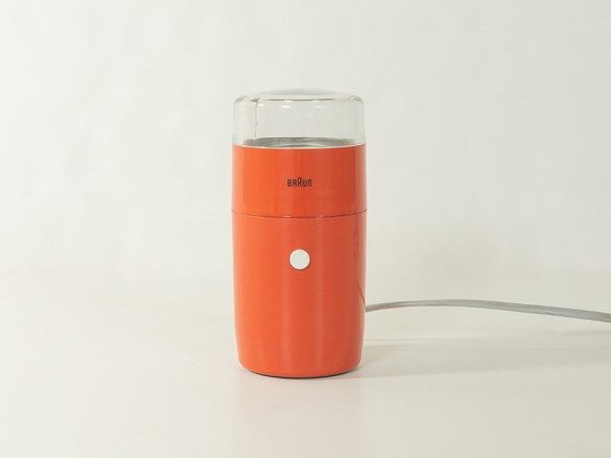 Raro macinacaffè elettrico KSM1 di Reinhold Weiss per Braun, quasi inutilizzato, degli anni '60, nella sua scatola originale. Elegante scocca in plastica arancione. Manuale di istruzioni incluso.