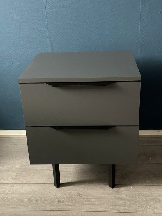A causa di un imminente trasloco, vendo questo mobiletto di design di MADE. Questo mobiletto non è più disponibile da MADE. Ha un aspetto pulito e moderno, con due ampi cassetti e gambe nere. Adatto come comodino, piccola cassettiera o mobiletto compatto.